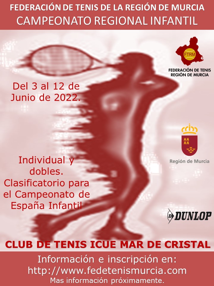 Hasta el jueves 26 de mayo, permanecerá abierto el plazo de inscripción para el Campeonato Regional Infantil Individual y Dobles clasificatorio para el Campeonato de España Infantil. El Campeonato se desarrollará del 3 al 12 de junio.