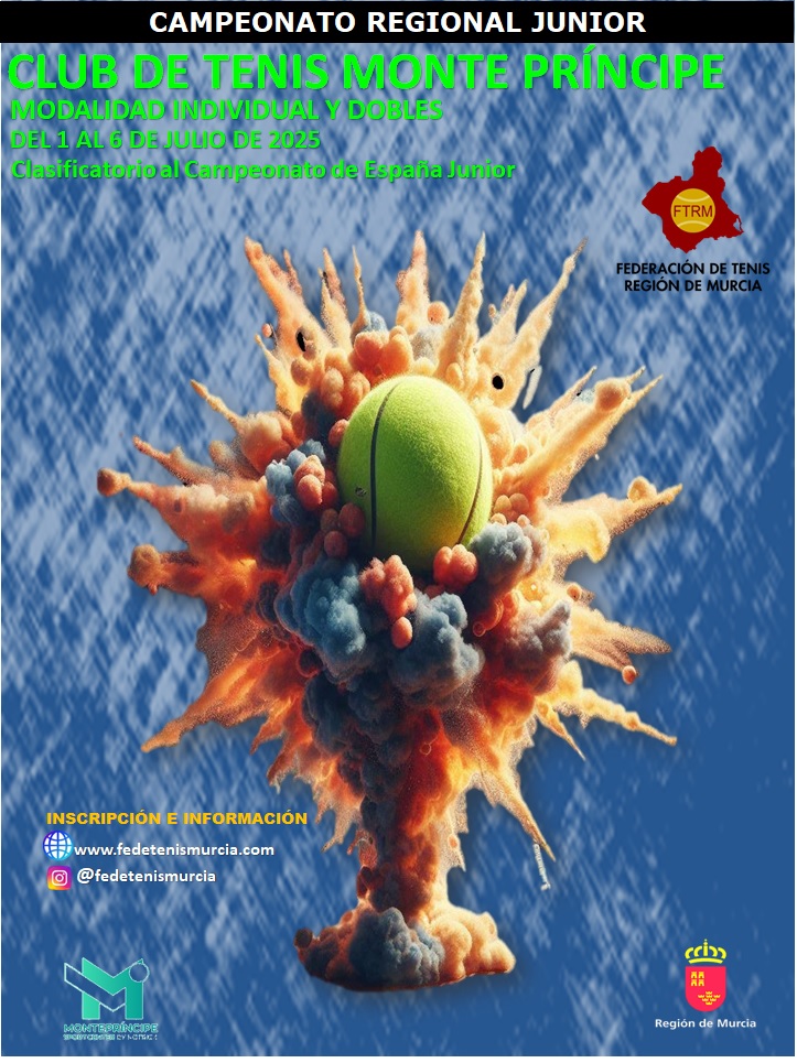 La Federación de Tenis de la Región de Murcia, abre el plazo de inscripción del Campeoanto Regional Junior de la Federación de Tenis de la Región de Murcia que se celebrará en el Club de Tenis Monte Príncipe del 1 al 6 de Julio de 2025