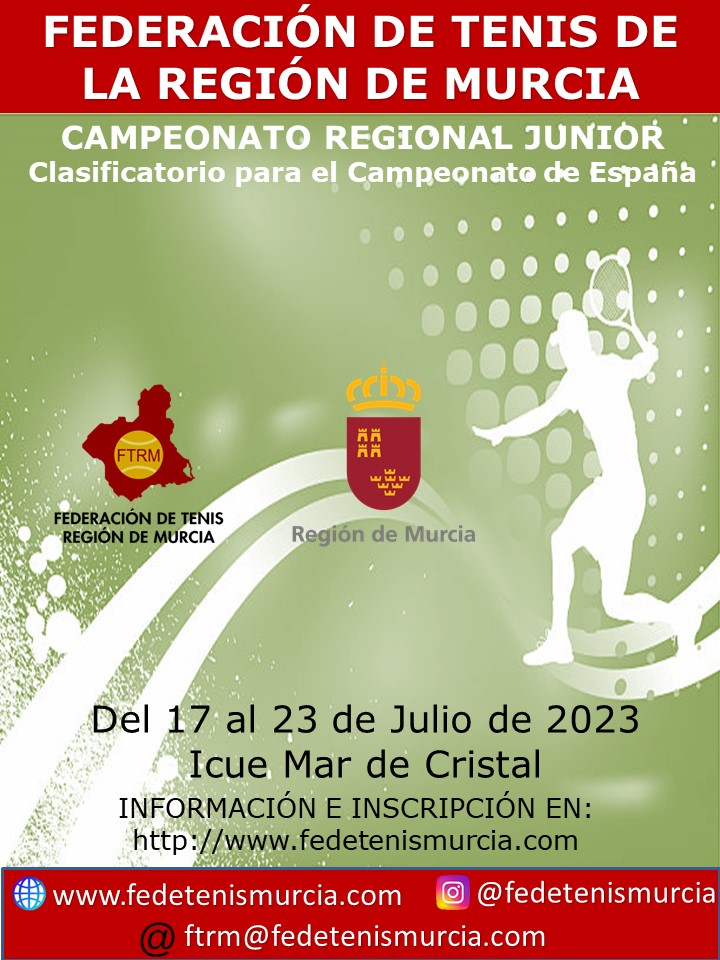 El Campeonato Regional, se celebrará en las instalaciones del Club de Tenis ICUE Mar de Cristal. El Campeón y Campeona tendrán acceso directo al Campeonato de España Junior que se celebrará en el Club Tennis Reus Monterols a partir del 14 de Agosto.